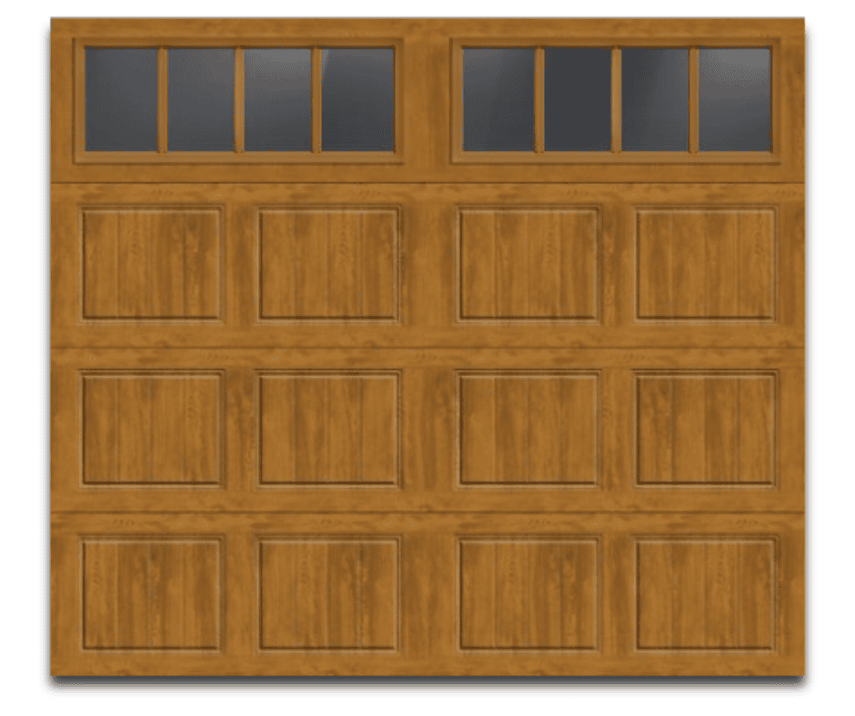 Size: 10’0″ x 7’6″ Windcode : W0 Model: GD1SU Design: Short Panel Construction : 3-layer 1 3/8″ Intellicore® Insulation R-value 12.9 Base Color: Ultra-grain® Oak Medium Finish Top Section : Rec14-rectangular 1 High/4 Across Glass Type: Double Pane Clear Glass (insulated) Spring: Coated Torsion Track Size: 2″ Assembled Track Type: Standard Mount Type: Bracket…